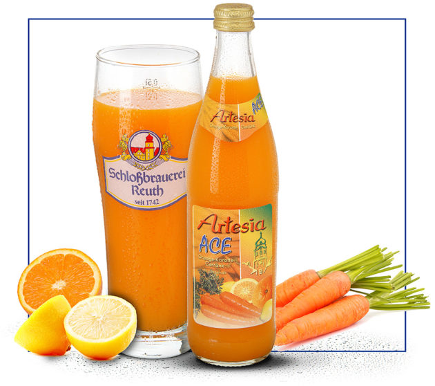 Fruchtiges und vitaminreiches Orange-Karotte Getränk mit natürlichem ARTESIA-Quellwasser Fruchtgehalt: 25 % Zutaten: ARTESA Quellwasser, Orangensaft aus Orangensaftkonzentrat 20%, Zucker, Karottensaft aus Karottensaftkonzentrat 5%, Zitronensaft aus Zitronensaftkonzentrat 5%, Vitamin C, Stabilisatoren Pektine und Johannisbrotkernmehl, natürliches Aroma, Vitamin E,Provitamin A, Vitamine C und E sowie Provitamin A zugesetzt